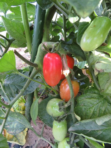 2017年07月17日(月) ついにトマトが色づきました! ズッキーニとキュウリラッシュが続いていて、「トマトがなかなか赤くならないな~」と思っていたら、中のほうに赤く色づいたの発見!!すごく嬉しいです♪これからトマトラッシュかな♪