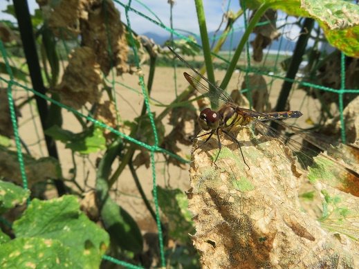 2017年09月06日(水) 秋模様 夏の暑い盛りには、緑色の綺麗な小さい蛙がぴょんぴょん飛び回り、ミツバチがせっせと花の蜜を吸っていました。9月に入ってからはトンボが沢山飛んでいて、土の中から土色をした蛙が出てきたりします。作物だけじゃなく、畑に住む生き物も秋模様です。