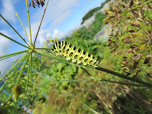 畑にこんな綺麗な虫がいました!どんな蝶々になるのかな~
