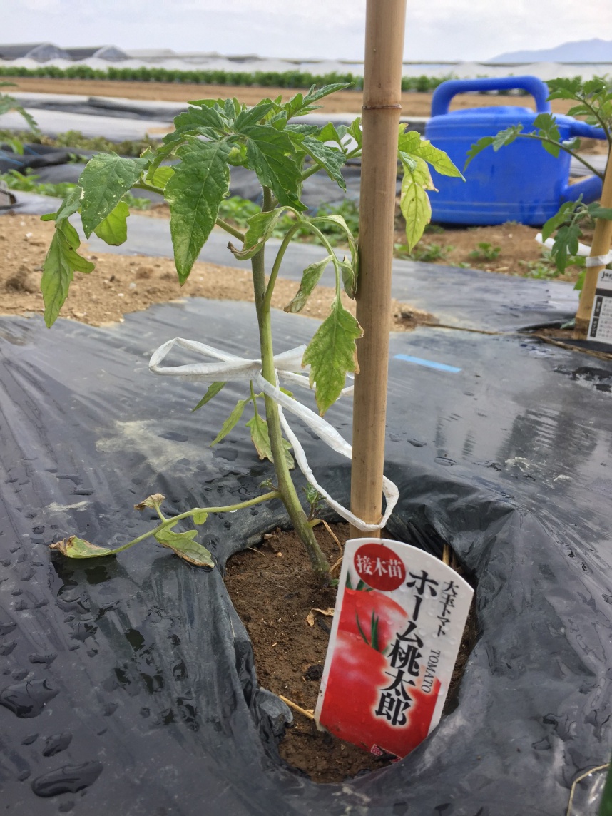 2018年05月29日(火) 桃太郎さんが心配です 桃太郎さん、元気がない様子です。寒いのかな?「元気出して!」と声を掛けてきました。少し様子を見ようと思います。 一緒に植えたミニトマトはとても元気な様子です。