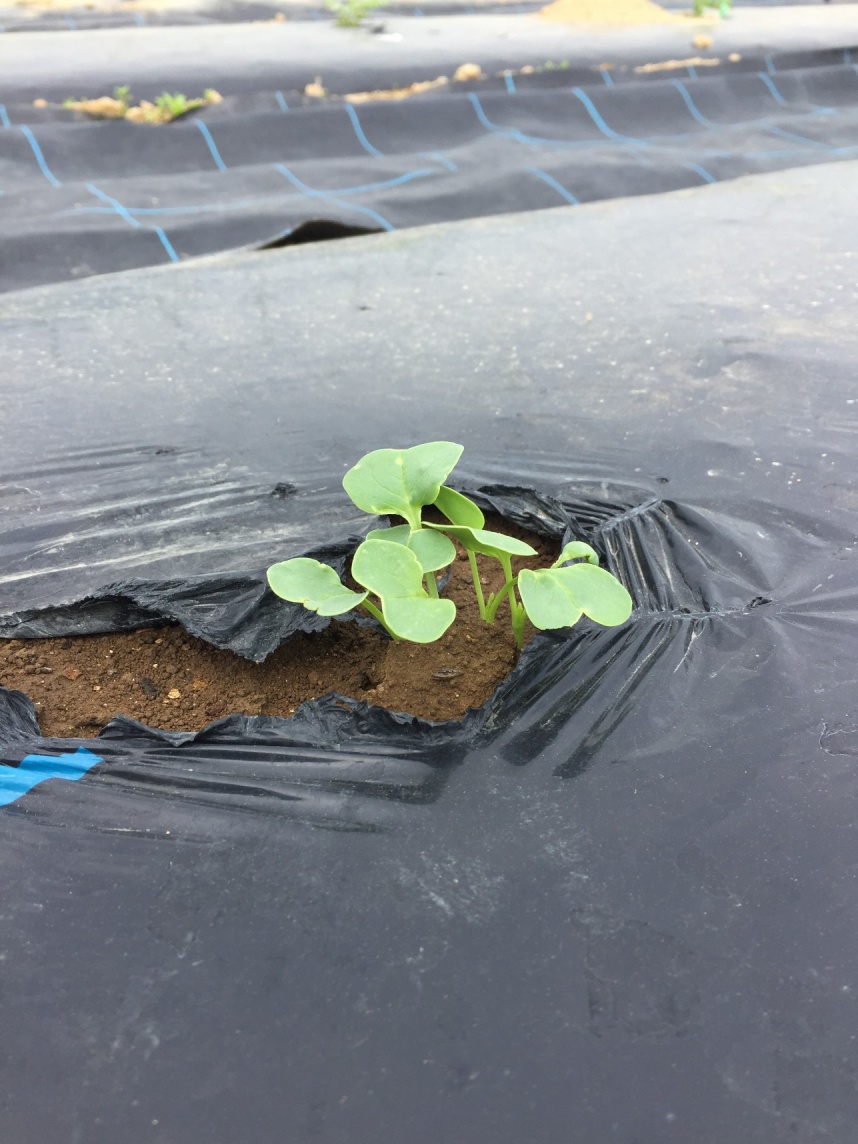一つの穴に3つずつ種を蒔いた大根。見事に全て発芽しました!今日は1つ間引きして2つずつ残しました。