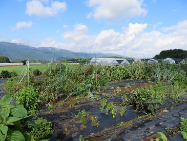 2018年09月05日(水) 大型の台風が通り過ぎました 昨晩はすごい雨風で、村内でも倒木や停電が相次ぎました。 今朝畑へ行ってみると大きな被害は見られずほっとしています。 背の高い作物や支柱が少し傾いていますが、しっかりと根を張り一生懸命に生きています。