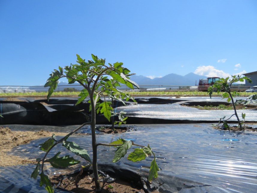 ミニトマトの苗を分けて頂き植えました。太陽の光を受けてイキイキとしています!