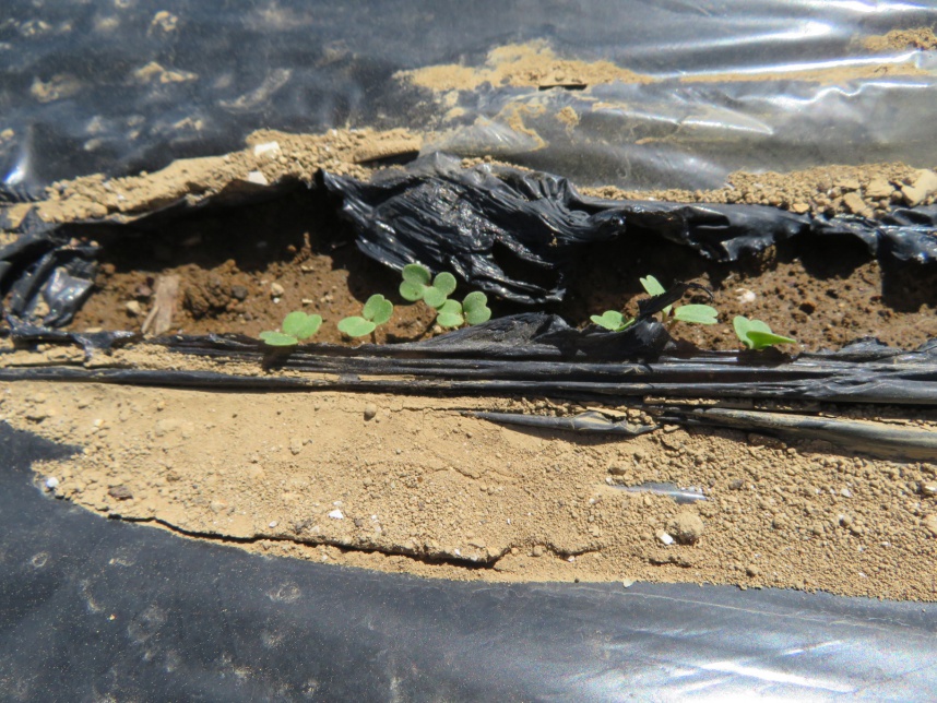 筋蒔きしたラインから、雑草と間違えてしまいそうな小さな葉っぱが沢山顔を出していました!これまたかわいいですね~♪