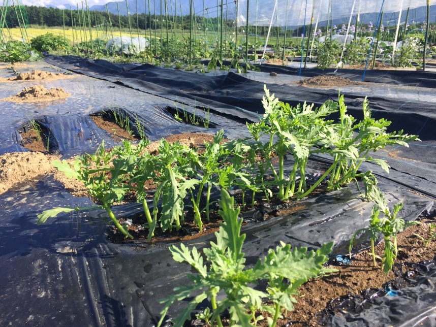 種まきをしたスティック春菊もいつの間にか食べられるサイズに!